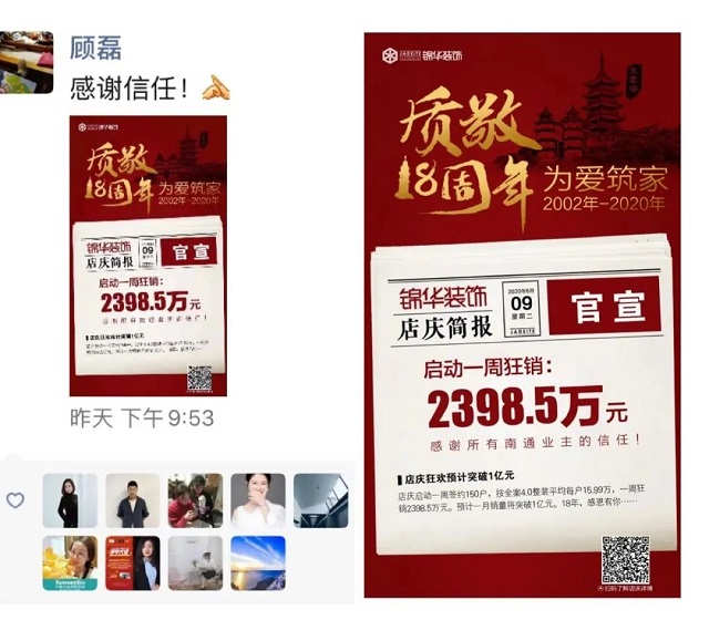 2020年6月7日,南通錦華裝飾啟動(dòng)一周的18年店慶,第一周的銷量突破2398萬(wàn)。對(duì)于家裝行業(yè)這樣一個(gè)消費(fèi)投資謹(jǐn)慎,個(gè)單投資大的商品,錦華裝飾是如何撬動(dòng)消費(fèi)者的神經(jīng)?