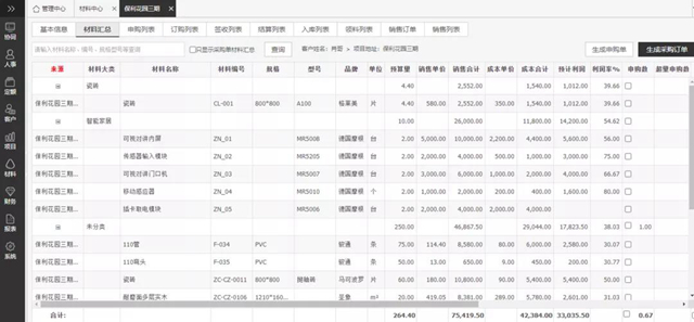 亮點(diǎn)8:施工項(xiàng)目的所有材料匯總(申購、采購、入庫、簽收、結(jié)算、銷售)查看對賬
