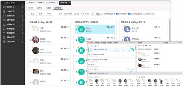 亮點3:龍虎榜排行(業務、設計、客服、工程)可按集團分公司、部門查看