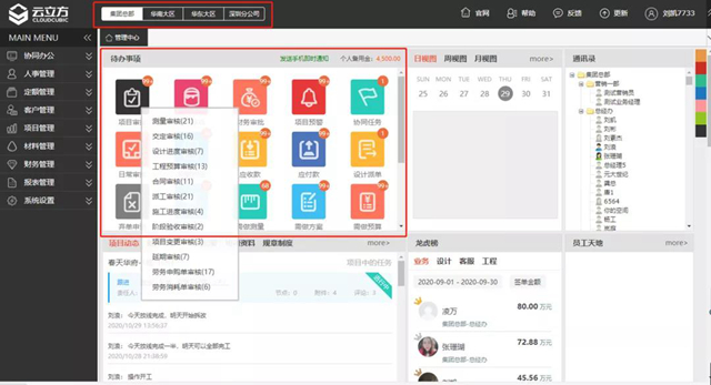 亮點5:集團版功能:同個賬號可以隨意切換(不同分公司可設置不同的查看權限)每個分公司可實現獨立項目管理、財務獨立核算