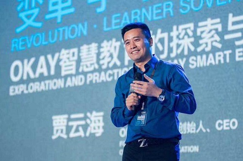 OKAY智慧教育創始人、CEO賈云海原來是江蘇南京的一位中學物理老師,后來加入新東方。2014年,他創辦了OKAY智慧教育,還拿到了新東方的投資。