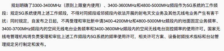 近日,工信部正式宣布了3000-5000MHz頻段內的頻率使用規劃,使我國成為全球首個率先劃分5G中頻段的國家。具體詳情為:3300-3400MHz(限室內使用)、3400-3600MHz和4800-5000MHz頻段。另外,這個規劃發布后,和上述頻段相沖突的無線電臺頻率的申請將不再受理和審批。